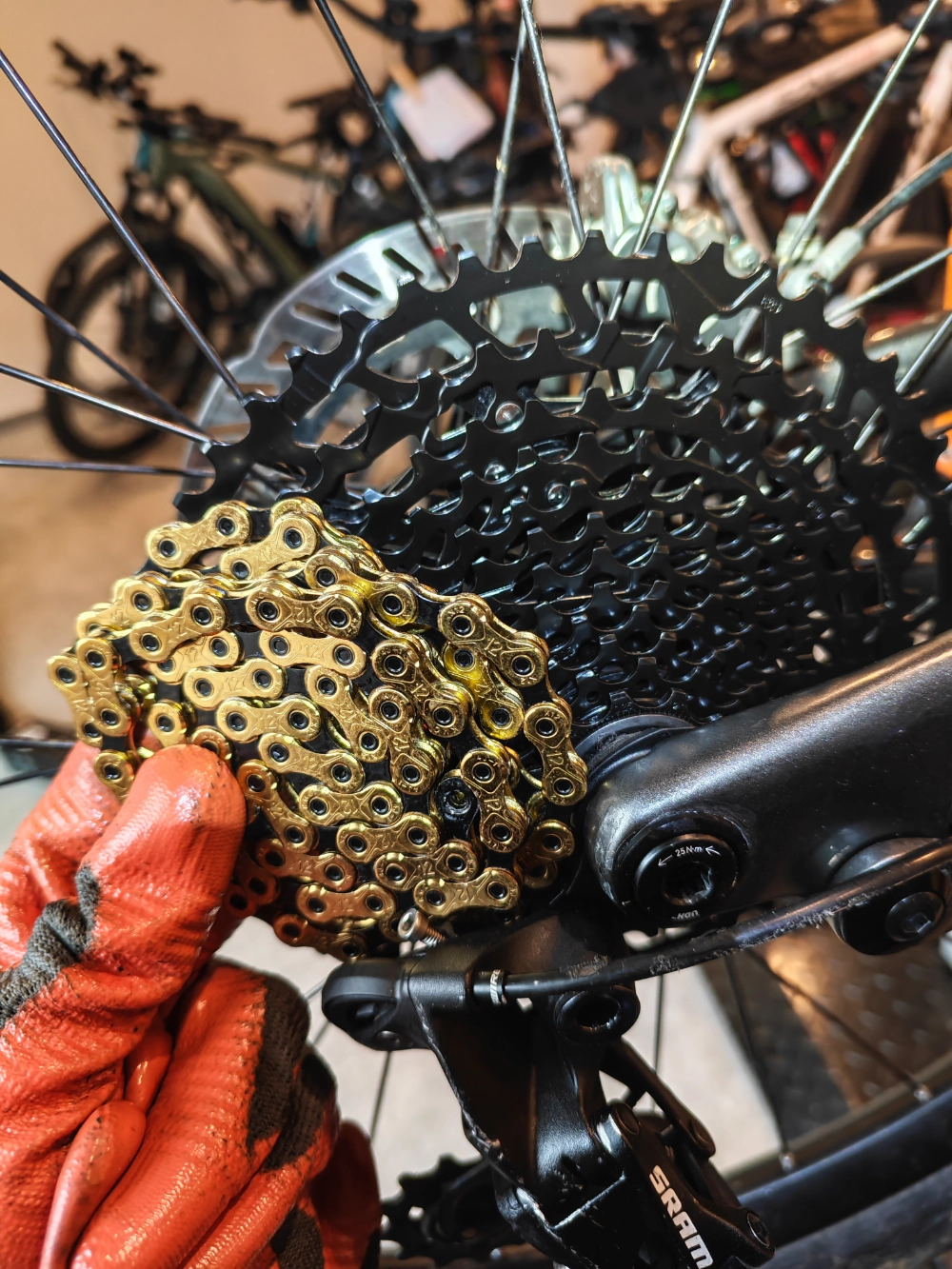Eine neue schwarze Kassette kombiniert mit einer goldenen Kette – technisch perfekt abgestimmt und optisch ein echter Hingucker.