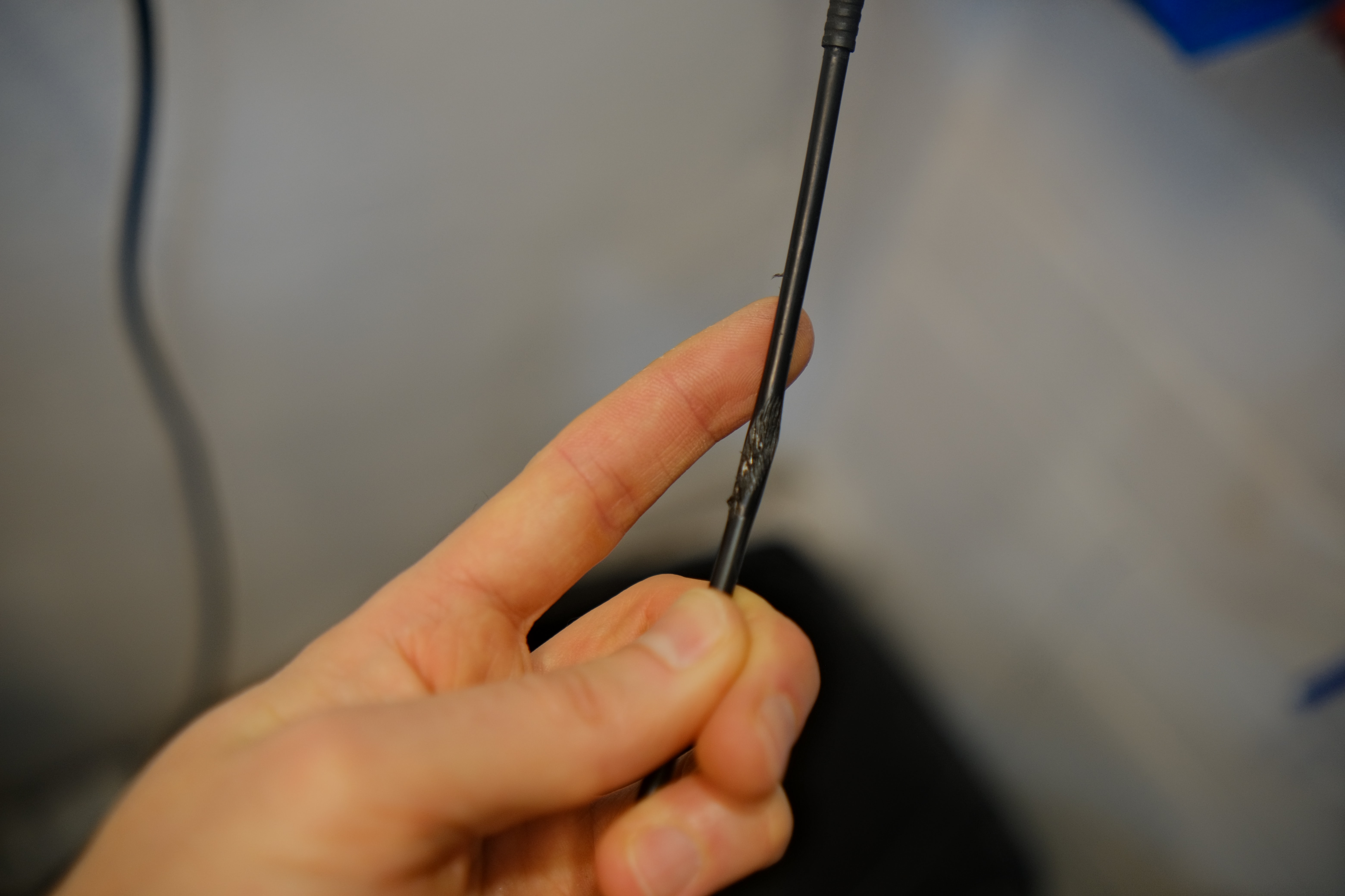 Hinten am Fahrrad, direkt beim Schaltwerk, war die Schalthülle beschädigt.